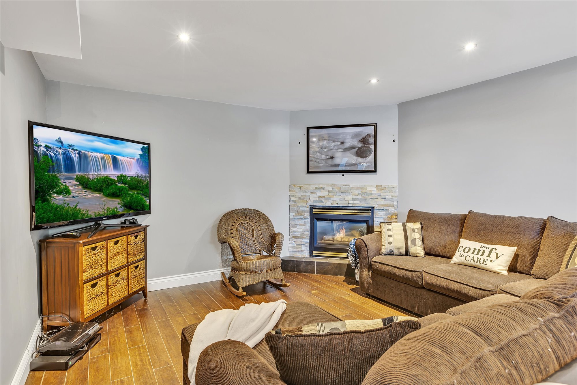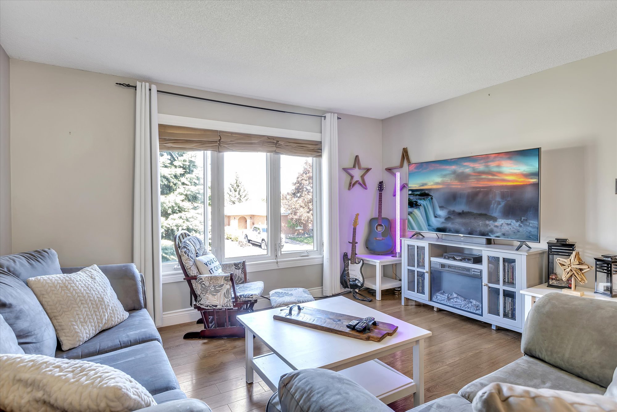 Venturing downstairs, you’ll discover additional living space that is as impressive as the main floor. A versatile fourth bedroom awaits, perfect for accommodating guests or transforming into a home office. The oversized rec room is a haven for relaxation, featuring pot lighting and a gas fireplace that adds warmth and ambiance on chilly evenings. The lower level also boasts a beautifully updated 3-piece bathroom, adding a touch of luxury to everyday living. Not to mention the convenient laundry/utility room with garage access, ensuring practicality and ease of use.