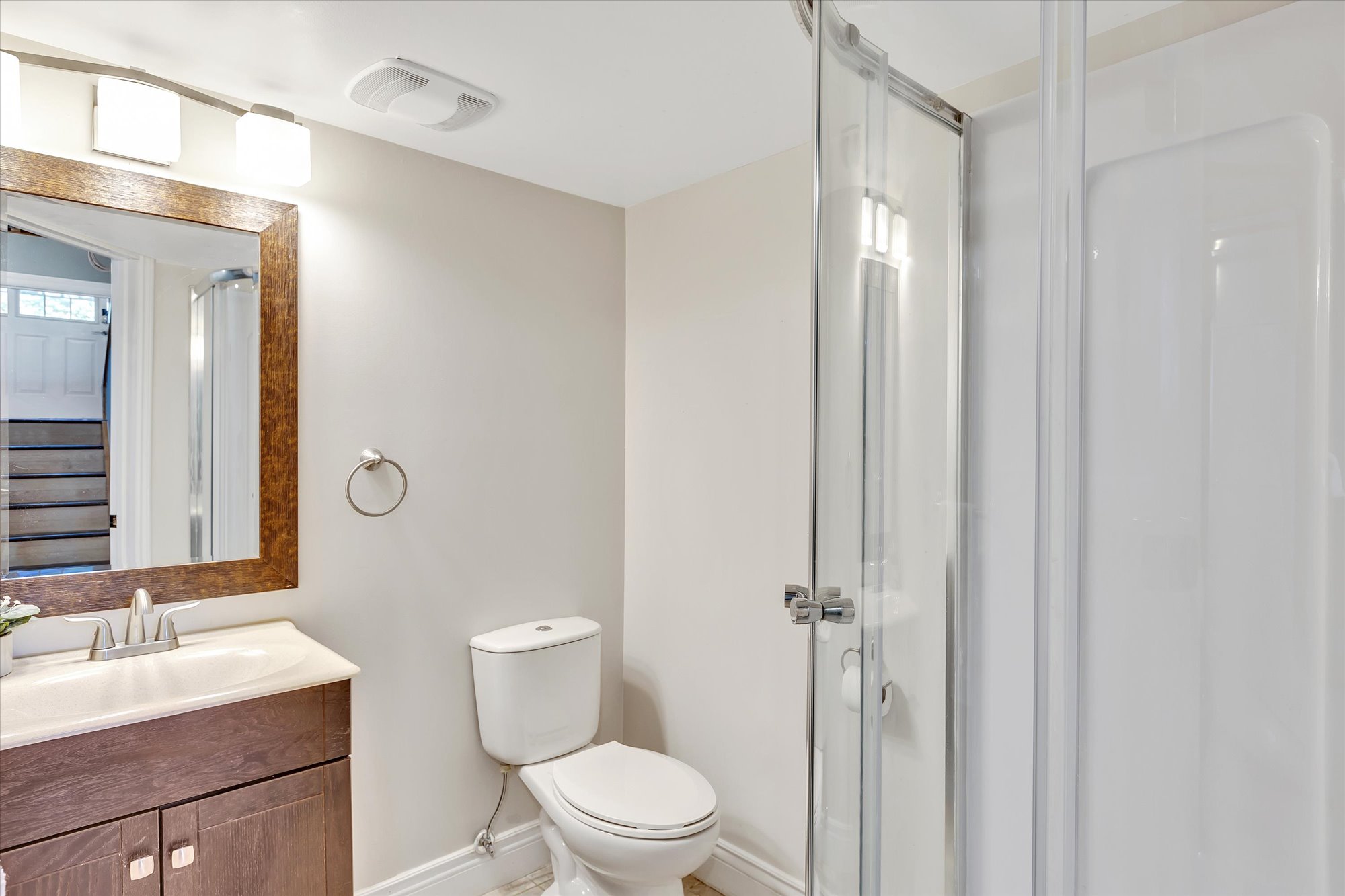 Throughout the majority of the main and lower levels, newer laminate flooring exudes a contemporary appeal, while vinyl windows grace every room, enhancing energy efficiency and aesthetics.