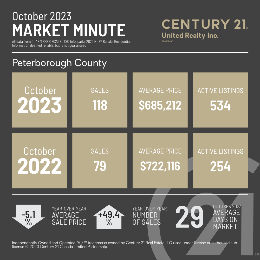 In the dynamic world of real estate, staying informed about market trends is crucial for both buyers and sellers. October 2023 has brought significant changes to the real estate landscape in Peterborough, revealing intriguing insights into the market’s health and direction. In this blog post, we’ll delve into the statistics from October 2023, comparing them to the same period in 2022, to provide a comprehensive analysis of the current real estate scenario in the city of Peterborough.
