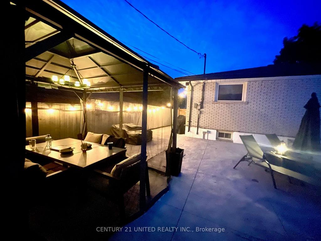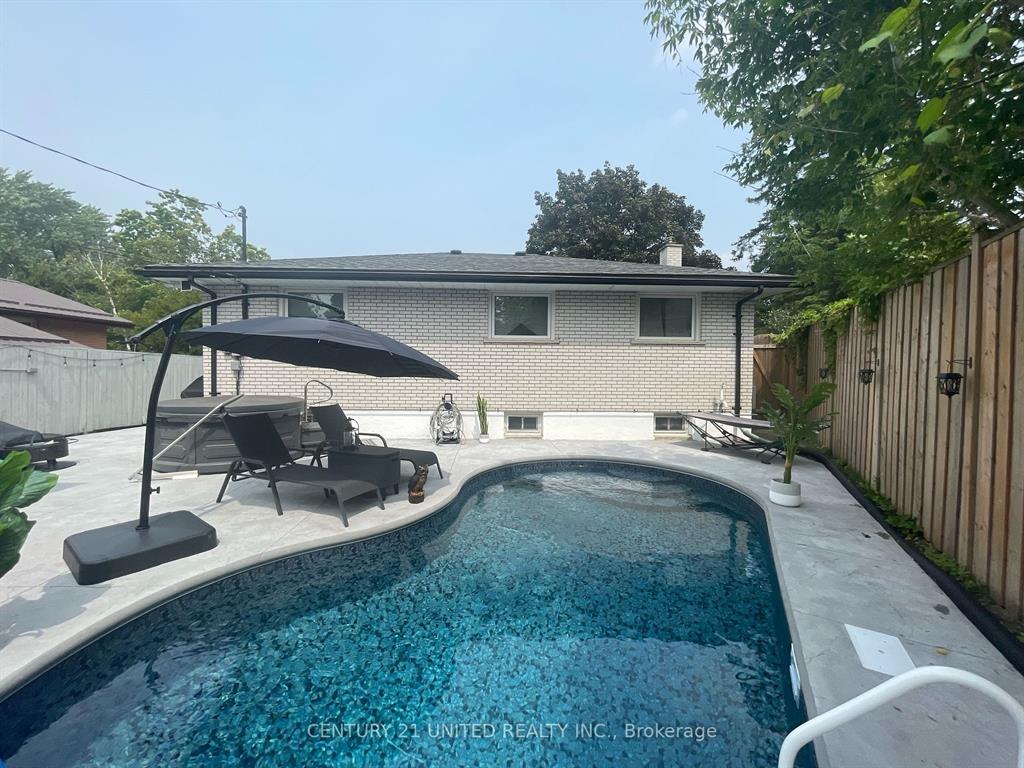 Escape to your private outdoor sanctuary, where a fully fenced yard hosts a newly installed heated kidney-shaped saltwater in-ground pool. Surrounded by low-maintenance stamped concrete, this oasis is a haven for relaxation and enjoyment. A new hardtop gazebo, adorned with solar lighting, adds a touch of luxury, creating the perfect space to unwind after a long day.