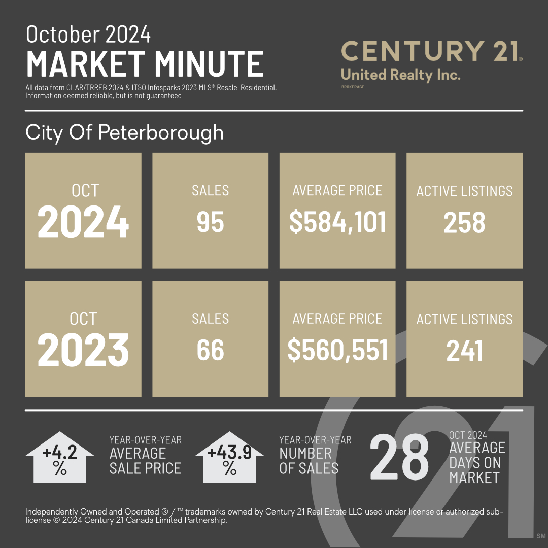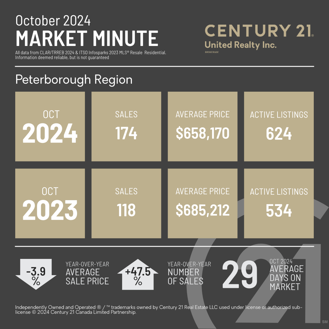 The real estate market in Peterborough, Ontario, showed strong momentum through October 2024, with year-over-year data reflecting both increased buyer activity and a modest rise in property prices. Let’s break down what this means for buyers, sellers, and our community as a whole.